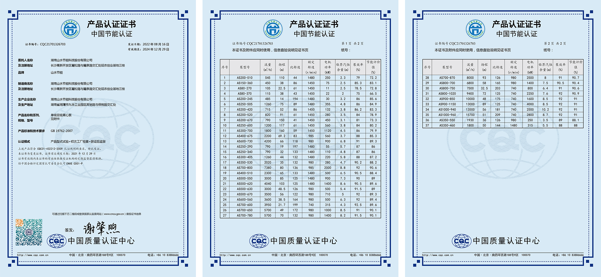 2021年12月,我司AS系列高效節(jié)能泵依據(jù)CQC31-432212-2009清水離心泵節(jié)能認(rèn)證規(guī)則、CQC/F002-2009資源節(jié)約產(chǎn)品認(rèn)證工廠質(zhì)量保證能力要求,通過(guò)GB 19762-2007《清水離心泵能效限定值及節(jié)能評(píng)價(jià)值》的評(píng)定,獲得中國(guó)質(zhì)量認(rèn)證中心頒發(fā)的《中國(guó)節(jié)能認(rèn)證》產(chǎn)品證書。