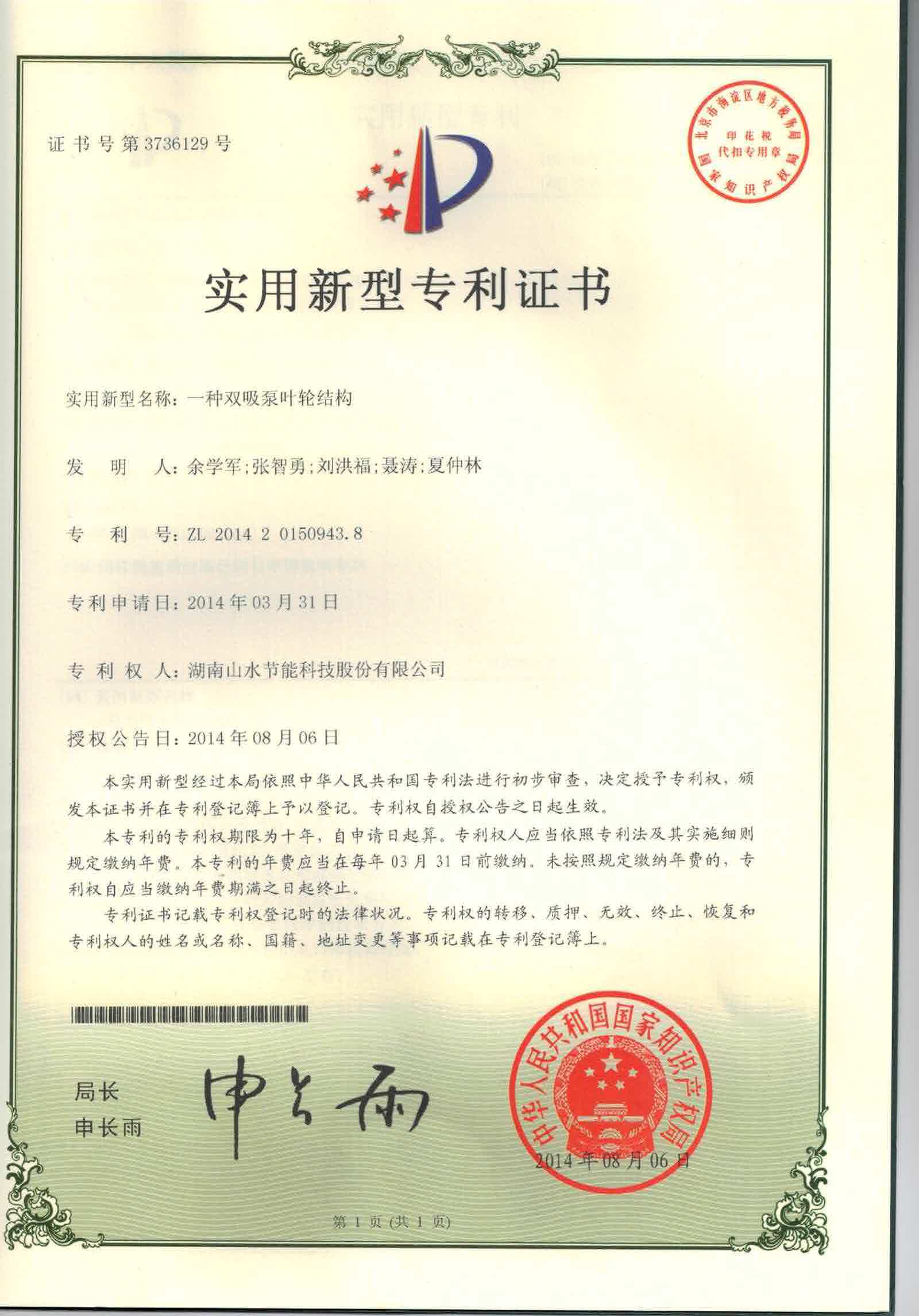 二、授權(quán)專利證書