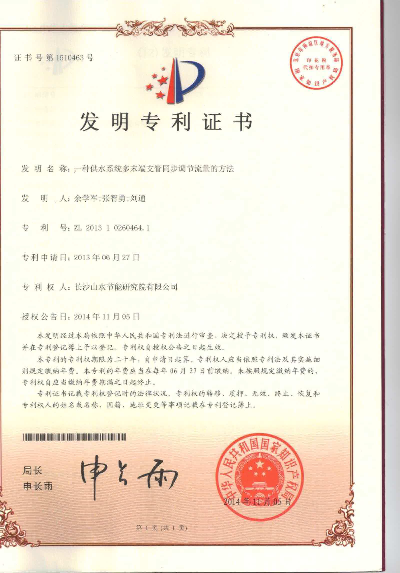 一種供水系統(tǒng)多末端支管同步調(diào)節(jié)流量的方法 |