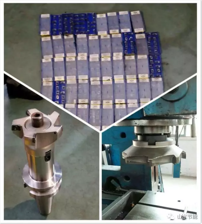 數(shù)控作業(yè)過程中,發(fā)現(xiàn)普通數(shù)控刀片可以重復(fù)二次利用,我們采取的對策是:只需增加刀盤R4P400R-100-32及吊桿BT50-FMB32。車間技術(shù)質(zhì)量主管文羅智在第一時間按工藝采購整改,并安裝調(diào)試使用成功。此刀片主要用于水泵的銑面加工,每件節(jié)約18.5元,大大節(jié)約了生產(chǎn)成本。