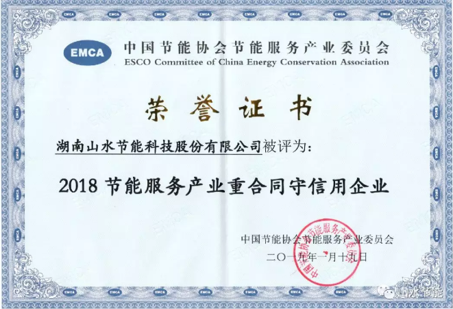 具有“達(dá)沃斯”之譽(yù)的節(jié)能服務(wù)產(chǎn)業(yè)年度峰會,是節(jié)能服務(wù)行業(yè)一年一度最具權(quán)威的品牌盛會,會上同時隆重頒發(fā)了2018年度節(jié)能服務(wù)優(yōu)秀企業(yè)等多項(xiàng)大獎,湖南山水節(jié)能科技股份有限公司在全國節(jié)能服務(wù)企業(yè)中脫穎而出,獲得二項(xiàng)大獎:“2018節(jié)能服務(wù)產(chǎn)業(yè)重合同守信用企業(yè)”、“2018EMCA優(yōu)秀會員單位”。