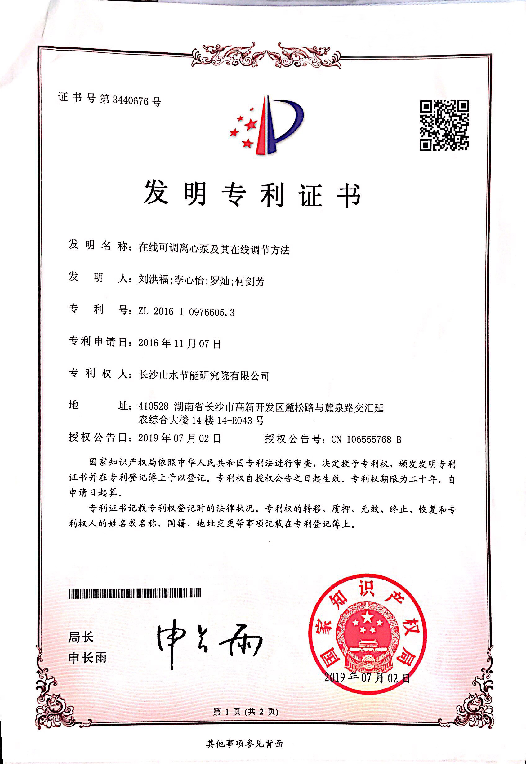 從國(guó)家知識(shí)產(chǎn)權(quán)局傳來(lái)喜訊,由公司自主研發(fā)的“在線可調(diào)離心泵及其在線調(diào)節(jié)方法”、“冷卻塔供水系統(tǒng)節(jié)能調(diào)節(jié)裝置”二項(xiàng)成果榮獲國(guó)家發(fā)明專利和實(shí)用新型專利授權(quán)。